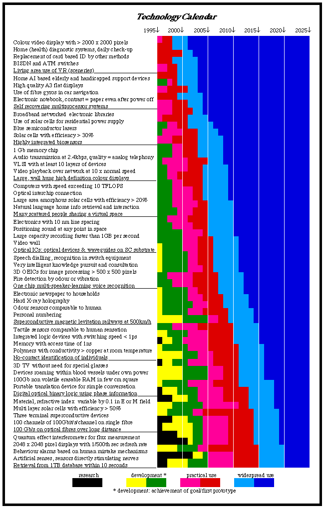 A technology calendar is appended to more graphically illustrate the progress of some of these technologies.