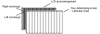 Preprints & Reprints Abstract Keywords Introduction Unfortunately, all spectacles based 3-D systems require the wearing of dark or coloured spectacles, which dramatically reduce eye contact. Dark spectacles can even make the wearer look doubtful or sinister. Since eye contact with the person at the remote location is one of the key advantages offered by video-telephony and video-conferencing, spectacles based 3-D imaging approaches are not appropriate for these applications. We have developed a prototype spectacles free system which demonstrates the impact of 3-D in a video-telephone application. This demonstration has been assembled using commercially available components with a liquid crystal display and a lensed sheet (a lenticular sheet ) overlay. The views from two remote cameras, equivalent to a left and right eye view, are displayed. Spectacles based systems are ideal for applications where eye contact is not necessary. We have developed the concept of a remote 'surrogate head' linked back to a 3-D system, such as a spectacles based display or an immersive headset. The surrogate head has two cameras which collect views of the remote scene. The views are then transmitted over the telecommunications network to the user. This concept could be particularly useful in remote working applications where the visual image, coupled with the depth information, is important. 3-d video-telephony. Previous work. The availability of flat panel displays with a suitable pixel arrangement.