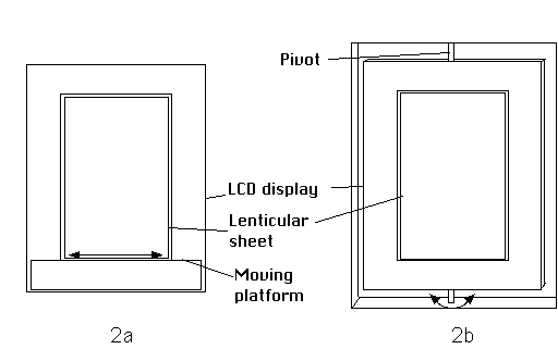 Recent developments. The long term solution for both of these issues is to use better displays and intelligent camera systems to monitor the user's position. In the short term we have used a head tracking system that monitors the user's position and provides feedback to move the views and to ensure that the correct views are displayed. This allows the user to move more freely in front of the video-telephone and gives an enhanced visual effect. For our first demonstration we have used an infra-red headtracking system to locate the observer's head position laterally with respect to the screen. Initially we thought that the best way to overcome the 'limited viewing zone' problem was to move the lenticular sheet with respect to the LCD panel. At most, for the panel we are using, this movement would be of the order of +/- 2mm and this could be achieved relatively easily with piezo-electric transducers or miniature stepper motors. The position of the two views would then change to follow the user. After some preliminary tests we found that a better way to move the views was to rotate the complete LCD and lenticular sheet assembly using a stepper motor so that the correct views are always shown.