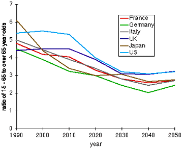 Fig 1. Ratio of 15-64 year olds to over 65's