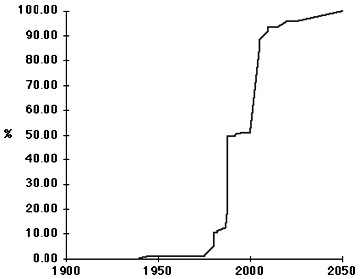 At present digital computing speed is increasing by a factor of 100 per decade (Figs 8, 9). There are no reasons to expect any decline in this rate in the foreseeable future, but some reasons to expect it to increase. Indeed, we could argue that positive technology feedback could give an additional improvement factor of 10 per decade over that resulting from human research alone. Thus, the overall improvement rate could be 1000 times per decade. The 2030 super computer could be 1 million times more powerful than the brain. However, there remain many areas unique to humans that these figure do not (and cannot - yet!) take account of. By the same line of reasoning the PCs of 2030 may be equivalent to 10,000 human brains. They will not be recognisable as PCs by then of course.