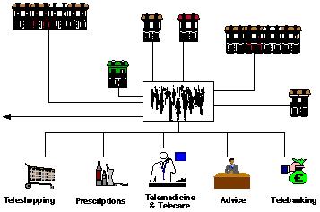Here the primary impediment to realisation is the human - machine interface. Unless machine interfaces become considerably easier to use than today's PC interfaces, there is no hope for them in mass use. Indeed, this is another mechanism for the generation of an economically and health-wise disadvantaged class. What is required is an interface that can be driven by the lowest common denominator, whether 5 or 90 years old. Progress which is being commercially driven by Video on Demand (VoD) and other services designed for mass penetration, i.e. telecommunications, computing, games, TV, radio, Hi-Fi, and sensertainment, might provide a more usable interface.