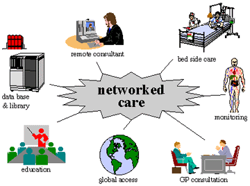 These are all feasible through the use of networked Personal Computers (PC) equipped with video cameras and high-resolution displays. Consultants, GP's and nursing practitioners can then share images and data via fixed and mobile communications, and thus assist in remote diagnosis and treatment (Fig 2). The PC that will achieve this might seem fanciful today, but it will be available in only a few years at a cost of less then £500. They will also function as an integrated entertainment and management centre for business and home use.