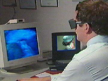 Orthopaedic surgery is also benefiting from networking. During a recent knee operation (Fig 7), the attending surgeons were linked with a consultant at a remote location equipped with a 3-D display (Fig 8). A binocular view of the procedure was delivered by a stereoscopic camera headset worn by the surgeon conducting the operation (Fig 9).