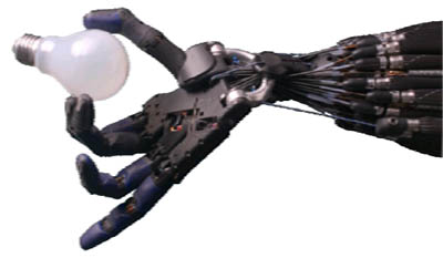 Fig 3: A modern robotic hand with separate sensors and actuator functions3) It turns out that whilst intelligent behaviour is possible without memory or processor, this is not true of simple sensors and actuators combined. This was recently writ large by a series of experiments on human subjects. Place a fully able human in an MRI scanner, ask then to close their eyes and imagine they are playing tennis, and their brain lights up. Now repeat that experiment with comatosed patients of many years and the same result is often evident! [24] [25]